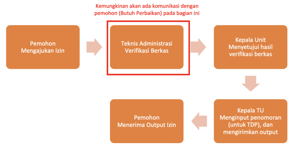 Khusus untuk Izin Surat Izin Usaha Perdagangan (SIUP) dan Tanda Daftar Perdagangan (TDP), termasuk pada kategori 1, sehingga alur prosesnya adalah sebagai berikut: