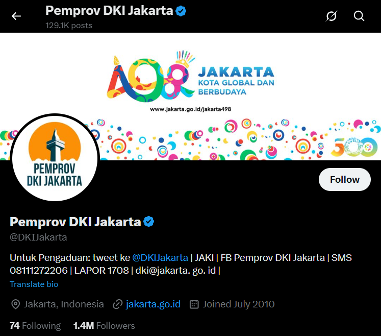 Warga dapat melapor melalui platform media sosial X dengan melakukan mention atau direct message ke akun X @dkijakarta